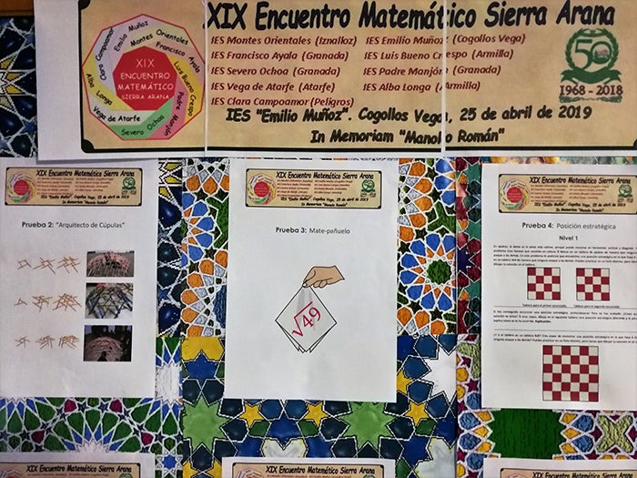 El jueves, 25 de abril, con la participación de unos 230 alumnos y 45 profesores de nueve institutos de Secundaria de la provincia de Granada, se ha celebrado con gran éxito el XIX Encuentro Matemático Sierra Arana. En esta edición los centros participantes han sido: IES Emilio Muñoz (Cogollos Vega), IES Montes Orientales (Iznalloz), IES Francisco Ayala, IES Severo Ochoa e IES Padre Manjón (Granada), IES Luis Bueno Crespo e IES Alba Longa (Armilla), IES Vega de Atarfe (Atarfe) e IES Clara Campoamor (Peligros).