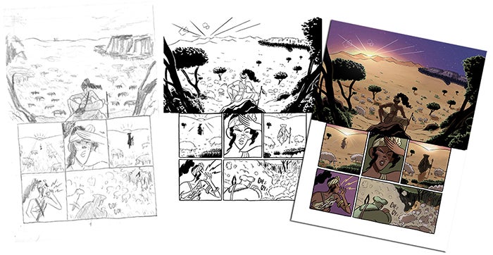 – Rubén: En mi caso, ya había estado en la Escuela de Arte de Granada antes, cursando los Estudios Superiores de Diseño Gráfico. En el tercer curso del grado decidí dejar esos estudios a un lado y hacer un ciclo de Ilustración, pues no había en aquel entonces oferta pública de estudios de cómic. Unas semanas después, como mi pasión por el cómic no era ningún secreto, me llegó la noticia a través de unos antiguos compañeros de que iban a impartir estudios de cómic en la Escuela, por lo que no tuve dudas en ir de cabeza a esos estudios. Y más, conociendo de antemano a varios profesores de la escuela que también eran unos apasionados del cómic y que, posteriormente, me impartirían clases en el ciclo.