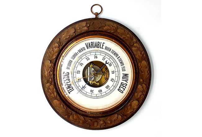 Se trata de un barómetro de Vidi, también conocido más comúnmente como barómetro aneroide. Tallado en madera, su marco circular es una auténtica joya. Una más de las muchas que se exponen en este maravilloso museo.