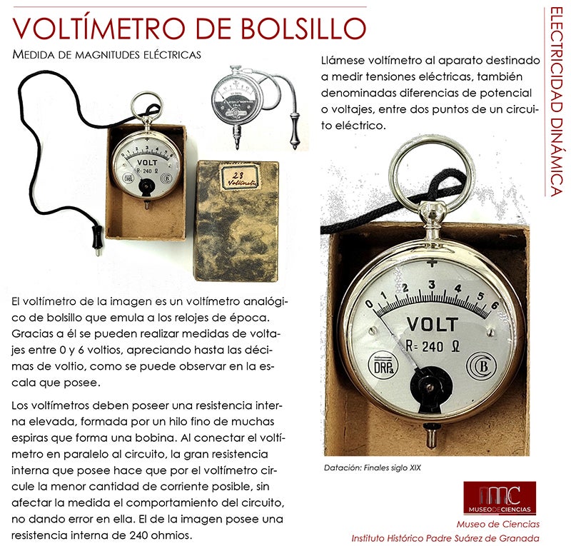 Fiel a su cita de los miércoles, José Emilio Padilla, responsable del Museo de Ciencias del Instituto Histórico Padre Suárez de Granada, nos trae un nuevo artefacto: un voltímetro de bolsillo.