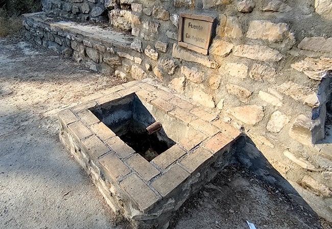 La Castejana, fuente muy vieja de muchos años ya. Qué como punto de aquelarres siempre será terrible lugar de apariciones de fantasmas, monstruos y marimantas y por donde también anda una clueca maléfica con su prole de oro puro en inocentes polluelos simulados.
