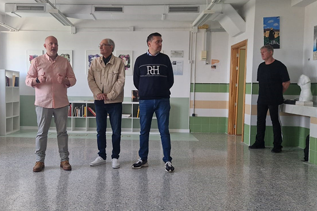 Son las 11,40 horas del 29 de abril y una comitiva formada por José María Sánchez Aranda, director del Centro y maestro de ceremonias, equipo directivo, profesorado y alumnado acompañan al pintor hasta el que a partir de ahora será su Espacio.
