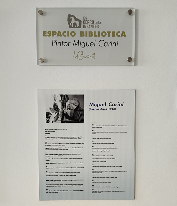 En un Centro Educativo, el Instituto de Pinos Puente, se crea un Espacio que lleva su nombre, Espacio Pintor Miguel Carini.