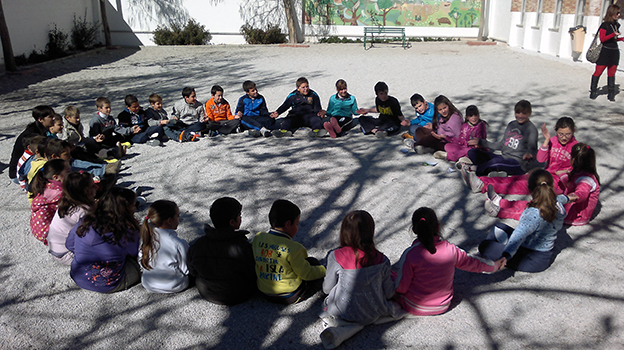 Es entonces cuando los alumnos levantan la mano para participar, como establecen los cánones mínimos de educación y saber estar en el aula, para compartir con el resto de la clase cómo ha empleado su recreo, con quién ha estado, cómo se lo ha pasado y finalmente si ha habido algún tipo de conflicto por minúsculo que sea, que no ha precisado la intervención de los moderadores de la Paz, de los maestros que ocupan su puesto de vigilancia o incluso de Equipo Directivo.