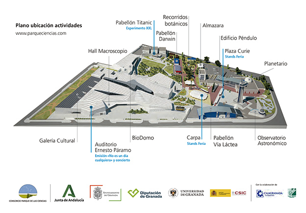 Del edificio Péndulo de Foucault al de Macroscopio, pasando por el edificio Vía Láctea, el Bosque de los Sentidos, el Laberinto Vegetal, el Mariposario o el BioDomo, los 70 000 metros cuadrados que ocupa el Parque de las Ciencias en el centro de Granada recibirán el próximo sábado 10 de mayo a todos los ciudadanos que deseen participar en la Jornada de Puertas Abiertas, con entrada gratuita para todos los públicos. Durante la jornada, se desarrollará la 27ª edición de la Feria de la Ciencia y se desplegarán todas las actividades del programa especial para celebrar