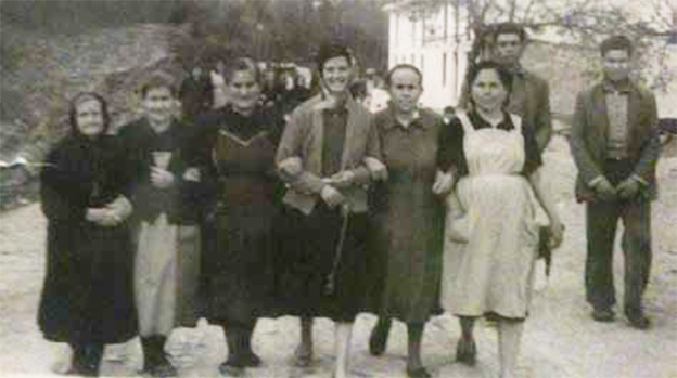 Paisanas y paisanos benalueños con La Culica la primera por la izquierda.