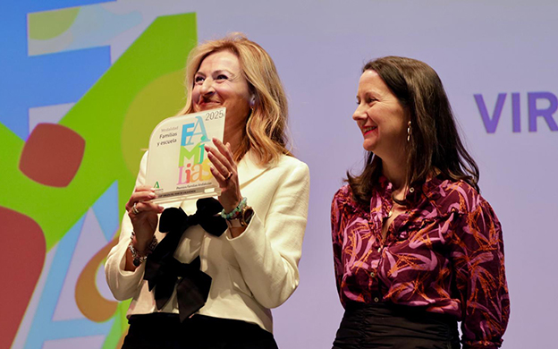 La consejera de Inclusión Social, Juventud, Familias e Igualdad, Loles López, ha presidido este jueves en Sevilla la gala de entrega de la V edición de los Premios Familias Andaluzas, que organiza su consejería para reconocer y distinguir a aquellas personas, entidades y empresas que trabajan por la defensa y la promoción de las familias. En esta edición, el Colegio de Educación Infantil y Primaria Virgen del Mar de Calahonda ha sido galardonado en la modalidad ‘Familias y escuela’.