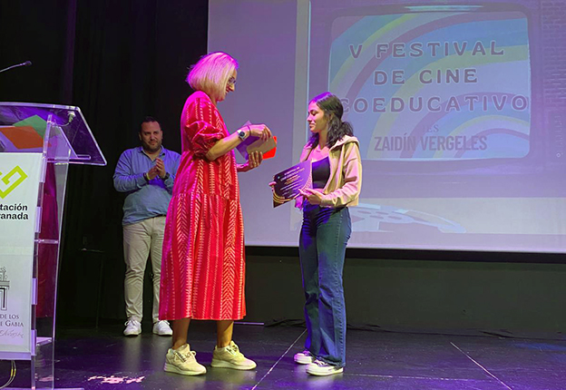 Uno de los momentos más especiales del festival fue la proyección del Video “Regalos”, realizado por la comunidad educativa del IES Zaidín Vergeles. Este trabajo pone en valor el compromiso del Centro con la igualdad, la diversidad afectivo-sexual y el respeto a todas las identidades y orientaciones. Regalos recibió el Premio al Mejor Video en Valores en los Premios Maja, organizados por el Consejo Escolar de Andalucía con motivo de la celebración de los Premios Goya en Granada, el pasado mes de febrero.