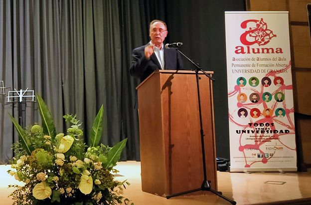 El acto arrancó con las palabras cálidas y llenas de gratitud de José Rodríguez, presidente de ALUMA, quien recordó que esta tertulia nació con un hito cultural: la proclamación de Granada como Ciudad de Literatura UNESCO. Desde entonces, no ha dejado de florecer gracias a la constancia de tantas personas apasionadas por las letras. Rodríguez no quiso dejar pasar la ocasión sin aplaudir el esfuerzo y sensibilidad de Luis de la Rosa, alma coordinadora de la tertulia, cuya entrega ha sido clave para su éxito.