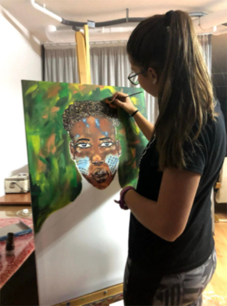 Recuerdo a mi padre saliendo con mascarilla, guardando todas las precauciones posibles en busca de pinceles y pintura. Mi madre me preparó un lienzo olvidado de casa y…allí comenzó todo. Pinté mi primer cuadro y desde entonces la pintura y yo nos hicimos inseparables. Pasé aquel verano entero pintando en mi casa de campo. Incluso abrí una cuenta de Instagram para compartir mi arte, con la esperanza de que mis cuadros viajaran a lugares donde yo aún no podía ir, aunque poco a poco lo estoy consiguiendo. Hoy sé que mi arte ha llegado a rincones que nunca imaginé: Asia, América, Inglaterra, Suiza y por muchas partes de España como Madrid o Cataluña.