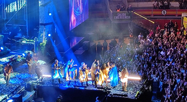 El pasado fin de semana, el coro Gospel Sounds Granada participaba en los conciertos que el cantante, Manuel Carrasco, llevaba a cabo en la plaza de toros de nuestra ciudad. El grupo hizo unos coros de tintes góspel en uno de sus temas más conocidos: “Que nadie”.