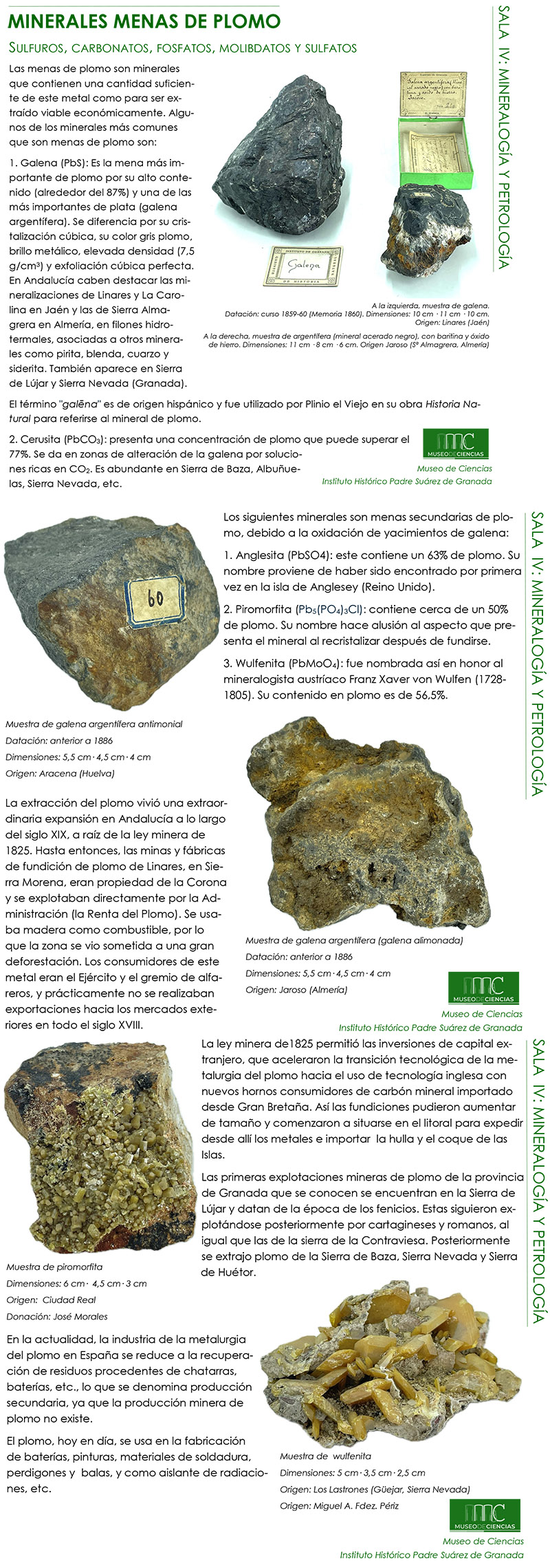 Esta semana, Mª Adelaida Adarve, nos propone sumergirnos en la historia de la extracción del plomo en Andalucía y Granada, que vivió su época dorada en el siglo XIX. Con este tesoro complementa el elemento de esta semana de Emilio Padilla, responsable del Museo, sobre la caja del Dr. Kagerah dedicada a este metal.