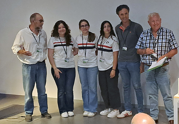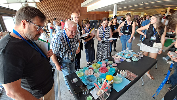 Así mismo, se haría eco de la «mucha gente implicada» en el concurso desde los profesores y alumnado, los coordinadores provinciales, los espónsores que han colaborado económicamente para poder comprar los productos que enviamos al principio y para los premios. No se olvidó de sus compañeros de la organización como Marta, «técnicamente es la segunda de abordo pero normalmente la primera y también tenemos a la gente voluntario voluntarios de soporte, gente de del Instituto Andaluz de Ciencia de la Tierra, jóvenes que están haciendo la tesis y que han estado preparando las bolsitas las acreditaciones». Igualmente haría referencia a LEC, el laboratorio de estudios cristalográficos y al IACT, CSIC centro desarrolla su labor y al anfitrión el Parque de las Ciencias especialmente a Gonzalo Rodríguez para el que pidió un aplauso.