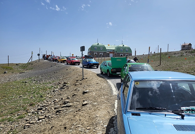 Una vez coronada la cima más alta accesible de Sierra Nevada, se rindió homenaje a Antoni Amat, quien lideró el equipo de Inducar encargado de la fabricación de la carrocería del modelo, fallecido el pasado 12 de mayo. Tras una sesión de fotos emulando la presentación original, realizaron el descenso atravesando Pradollano, almorzaron en el Restaurante Maitena y se dirigieron de nuevo hasta Granada, donde realizaron un desfile por las calles de la ciudad escoltados por la Policía Local, tras lo cual fueron expuestos en el Paseo del Salón.