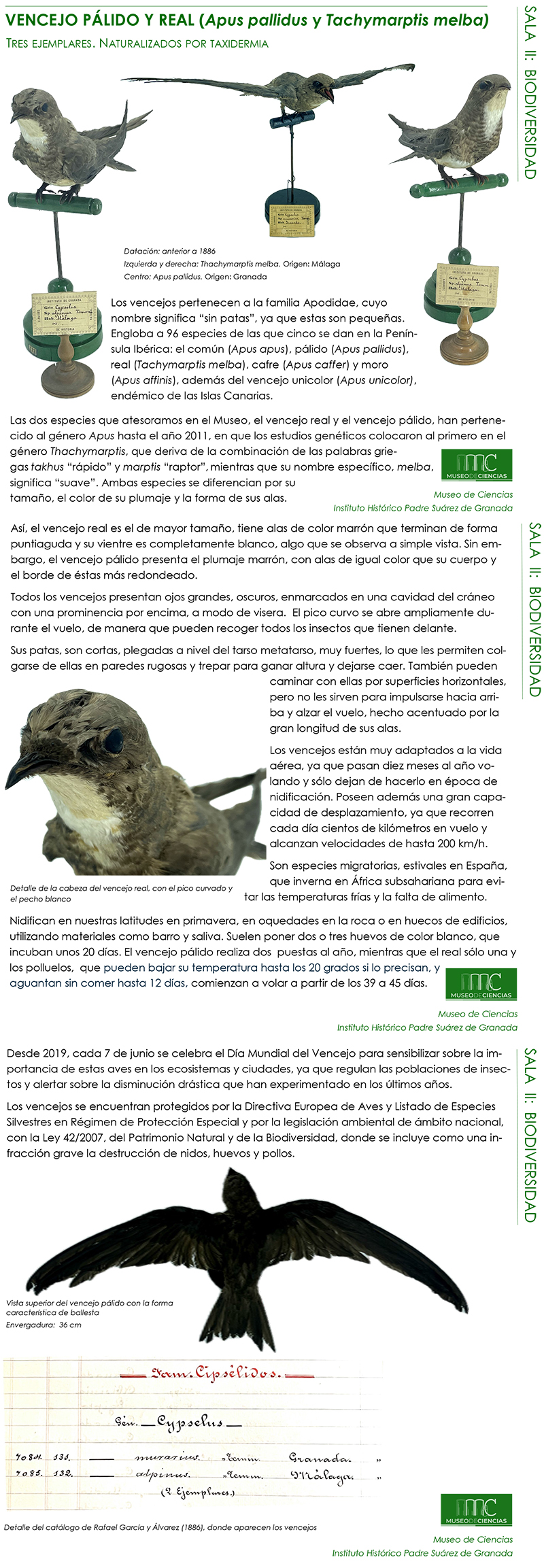¿Quién no asocia la llegada de la primavera con los estridentes chillidos de los vencejos? Estas aves, más emparentadas con los colibríes que con las golondrinas, son auténticas acróbatas en nuestros cielos. Con motivo del Día Mundial de los Vencejos, Mª Adelaida Adarve, responsables del Museo de Ciencias del Instituto Histórico Padre Suárez, quiere contribuir a conocer y proteger a estas increíbles aves.