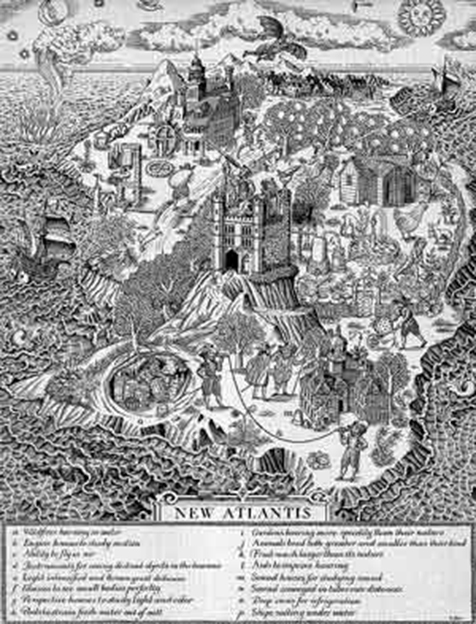 “He leído un libro escrito por uno de vuestros hombres — explica un hombre de Bensalem al viajero visitante recién llegado — que trata acerca de una república fingida donde se permite que los que van a contraer matrimonio se vean desnudos antes de comprometerse […]. Pero puesto que los cuerpos de los hombres y de las mujeres pueden tener algún defecto oculto, han adoptado una costumbre más decorosa: cercanos a cada ciudad hay dos lagos pequeños (a los que llaman de Adán y de Eva), donde se permite que uno de los amigos del hombre y una amiga de la mujer vayan a verlos, separadamente, mientras se bañan”.