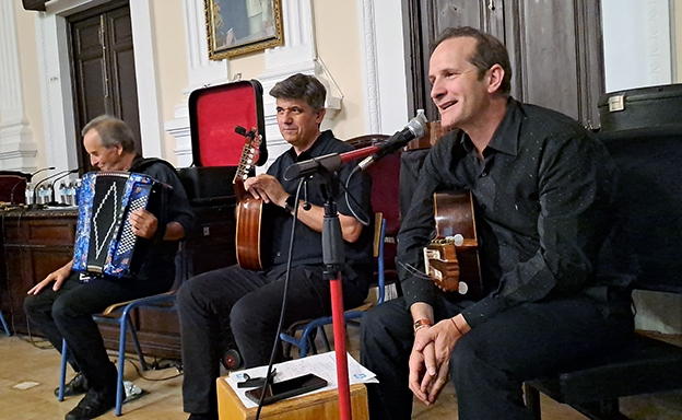 Por su parte, Eduardo López iba realizando una breve introducción musical de los ritmos que se iban a interpretar acompañado por su guitarra española para dar a conocer aspectos musicales y curiosidades de dichas canciones siendo la primera ‘La habanera imposible’, ‘María la portuguesa’, ‘Luna de abril’, ‘La habanera de Cádiz’ y ‘La alacena de la monja’ ‘La verde y blanca’ para concluir con ‘La Contraviesa’. Proyecto que desean llevar a otros escenarios como es el de la Peña La Platería.