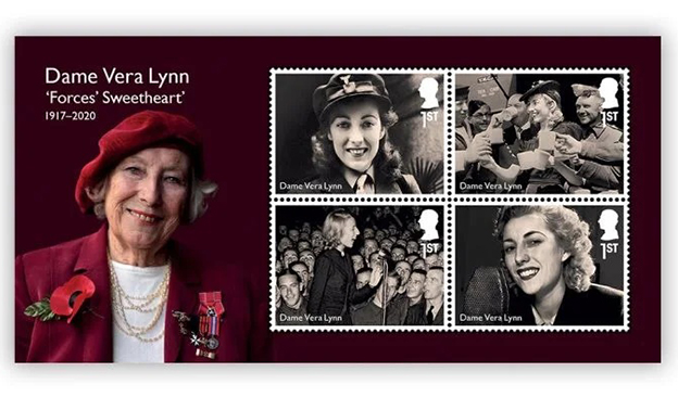Y llegamos a la dichosa hojita bloque que honra a Dame Vera Lynn, la que provocó la queja del correspondiente “talibán” ¿y esto qué tiene que ver con la radio? Supongo que, si los que me siguen han llegado hasta aquí, han visto que la radio apareció bien pertrechada en esta preciosa hoja del Día de la Victoria pero ¿quién fue Vera?