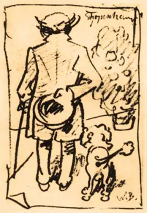 3) El afecto de Schopenhauer por los perros y hacia los animales era notable. Tenía retratos de ellos en las paredes, y decía que la mirada de cualquier animal le producía una gratificación directa “sobre todos los perros, y luego todos los animales libres: pájaros insectos o lo que sean”. Se le atribuye la casi increíble afirmación de que “si no hubiera perros, no querría vivir”. Para él los animales apuntaban al paraíso en su falta de ansiedad y de esperanza, en su imperturbable goce del presente, y en su serenidad que, en sus propias palabras, puede avergonzarnos de “nuestra propia condición frecuentemente intranquila y descontenta” (Citado en Ben Ami Scharfstein, Los filósofos y sus vidas, op. cit., p. 269).