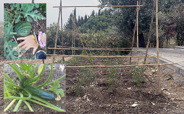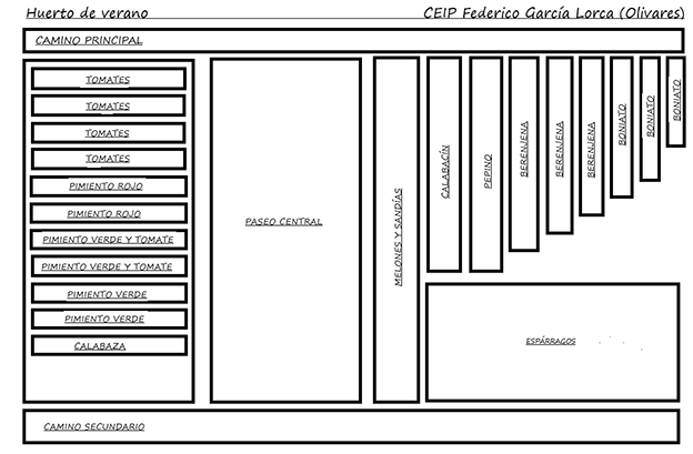 El huerto de primavera-verano ha comenzado con la limpieza del terreno y la preparación de los surcos donde el alumnado, con entusiasmo y curiosidad, ha participado en la siembra de una gran variedad de hortalizas: tomates, pimientos, calabazas, melones, sandías, calabacines, pepinos, berenjenas, espárragos y boniatos. También se han plantado aloes vera, que además de formar parte del huerto, ayudarán a repoblar el terraplén y a prevenir la erosión, aportando vida a un espacio que poco a poco se convierte en transitable y acogedor.