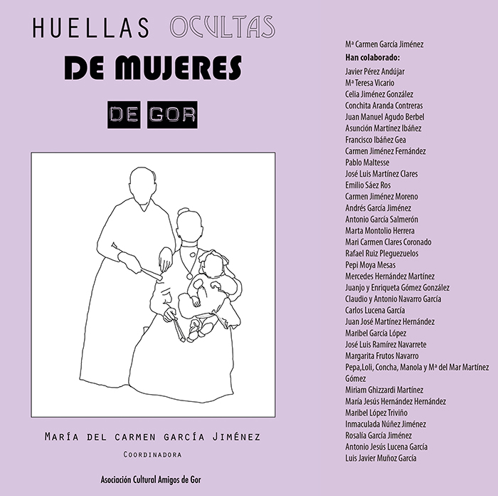 Dolores ‘La Ciega’, Bienvenida Hernández, ‘La Venía’; María García ‘La Alimenta’; Margarita Serrano ‘La Cuevera’; María Jiménez, ‘La Garulla’; Josefa Rivas, una goreña que hizo historia en Argentina; ‘La abuela Europa’, ‘La tía Felisa’, ‘La Fica’,… y así hasta más de 60 mujeres aparecen reseñadas en el libro colectivo ‘Huellas ocultas de mujeres de Gor’ al haber nacido o estar vinculadas al municipio de Gor. Publicación que ha sido posible gracias a la colaboración de la Diputación de Granada y el Ayuntamiento y que ha estado coordinada por la maestra jubilada y miembro de la Asociación Cultural Amigos de Gor (ACAG), Mª Carmen García Jiménez, quien ha contado con casi 40 colaboradores, principalmente mujeres. Se presenta el lunes, 4 de agosto, en el Salón de Usos Múltiples de esta localidad (20 h). Su coordinadora explica que el origen de este libro está en el boletín ‘Puerta de la Villa’ que publica la ACAG donde se incluyó una sección dedicada a goreños que pensó completar con otra dedicada a las mujeres que fue continuada por Emilio Saéz Ros.