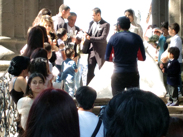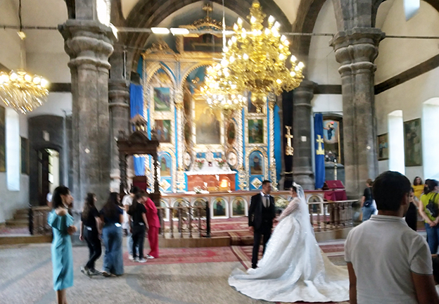 En el centro una modesta capilla que, ante la ausencia de visitantes, alguien debe de cuidarla pues las velas estaban dando luz en el minúsculo recinto, algo que no sucedía en la escalera de la destartalada torre central de la fortaleza que tenía sus cisternas en desuso y hacía difícil su visita aunque en su momento era el lugar que permitía controlar los accesos a la fortaleza y preparar la defensa cuando las circunstancias lo requerían; el lugar se encuentra en las afueras de la población homónima en la provincia de Aragatsotn, muy cerca del monasterio restaurado de san Cristóbal [VII].