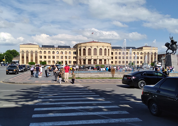 Tras un breve receso, café y cambio de aguas, dejábamos atrás Talin y su zona de influencia, el territorio era controlado y defendido desde esta fortaleza. La ruta en dirección norte continuaba, buena carretera aunque hubiera tramos en obras que por lo visto realizan constructoras alemanas a juzgar por la imponente maquinaria que removía las tierras. Tramo tranquilo y amplios horizontes en un día nublado que levantó algo más tarde para darnos la bienvenida a la antigua Alexandropol del imperio zarista que en el período soviético sería rebautizada como Leninakan [ya saben: culto a la personalidad, en este caso de aquél líder, bajito y enfermizo, que acabó con el zar y sus descendientes] y hoy se conoce como Gyumri, pasa por ser la segunda ciudad de Armenia, llegamos al pie del Museo local [Museo Nacional de Arquitectura y Vida Urbana] que se ubica en una finca confiscada [colectivizada dirían los puristas] levantada al lado de la Iglesia católica de la zona en 1872 por Petros Dzitoghtsyan, una saga procedente del territorio de Armenia Occidental que dedicaron su vida a los negocios: poseyeron cervecerías, molinos de aceite, baños públicos y edificios residenciales. En definitiva prósperos hombres de negocios que fueron acumulando riqueza; su casa es hoy el museo. Era un claro ejemplo de lo que que la revolución socialista de octubre odiaba: la propiedad privada y el estilo de vida: sobrevivir a la extorsión y tener que aguantar el nombre de Lenin, no debió de ser fácil para aquella, relativamente, bien acomodada familia; la guerra civil subsiguiente acabó de complicarlo todo.