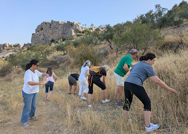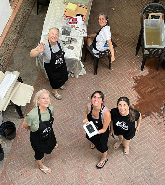 Por sexto año consecutivo ha asistido a esta residencia de artista Carmen Castellano, Licenciada en Bellas Artes por la Universidad de Granada, y además posee el Grado superior de Grabado y Técnicas de Estampación. Reconoce que para ella «ha sido un auténtico lujo, poder formar parte de esta gran familia un año más». Agradece a Emilio Luis y Juan la creación de «este maravilloso evento que que ya ha cumplido 10 años» y a Deborah Lulu Chapman, que les ha adentrado en la complicada técnica de la Mezzotinta. «Lo hemos pasado muy bien con todo lo que nos ha mostrado sobre su trabajo, es una profesional increíble y hemos aprendido muchísimo de ella», afirma antes de añadir que con Juan, la recogida de la avena silvestre, es ya un clásico. Puntualiza que «también hemos hecho papeles con esparto, bambú, abacá y gampi, entre otras fibras. La producción de papel es muy refrescante sobre todo por el calor de agosto, y lo pasamos genial…».