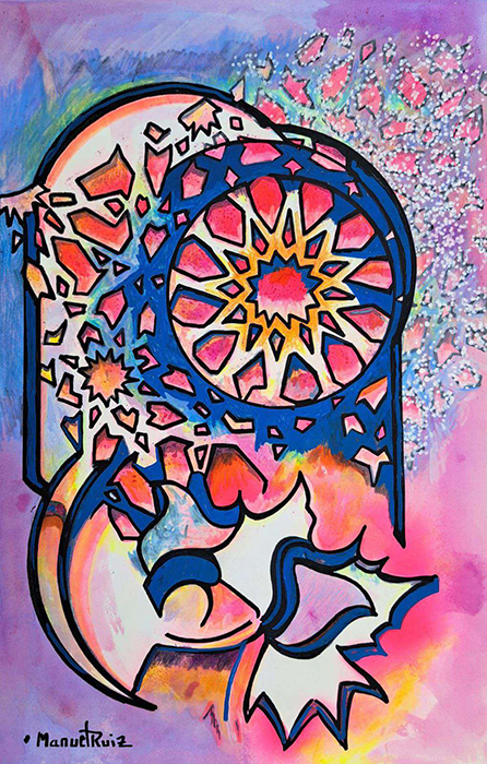 En la página web de Manuel Ruiz Ruiz se informa que nació en Granada, 8 de agosto de 1948, en la calle Melchor Almagro del barrio de Gran Capitán. cuenta con una amplia experiencia, tanto en el mundo educativo como artístico, ya que durante años fue coordinador del Gabinete Pedagógico de Bellas colaborando en la edición de material didáctico para los centros educativos. Paralelamente ha desarrollado su faceta artística como pintor.