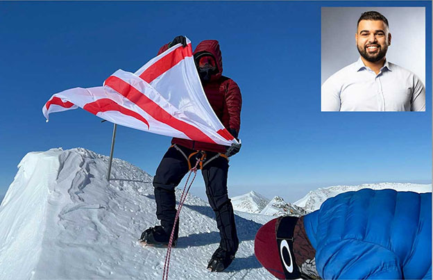 Pero, lo que le llevó a las portadas de la prensa y acabó convirtiéndolo en un una leyenda para su comunidad fue la pasión por la montaña a la que le entregó su vida y un ejemplo podría ser el del trabajo de la artista kazaja Rakhat Saparalieva que le dedicó un acrílico donde, a pesar de la dureza de sus gestas, él aparece sonriente y ya forma parte de una sala del Museo de la Ciudad Amurallada. Tras su sonrisa está la foto que se utilizó para confeccionar el sello de 1,75 liras turcas emitido en Nicosia el pasado 19 de diciembre de 2023 dentro de la serie genérica dedicada a los aniversarios y donde aparece filatelizado con el facial más bajo del grupo que es el de la tarifa básica, nos lo muestra con la bandera de la República Turca de Chipre del Norte en la cima del Monte Vinson [el más alto de la Antártida con casi 6.000 metros] el 16 de diciembre de 2021, pocos días antes de su fatídico accidente en los Estados Unidos, hecho luctuoso que acaeció mientras practicaba el esquí y que le dejó sin poder conseguir su sueño iniciado en 2016 cuando escaló la cumbre del mítico Kilimanjaro: le faltaban dos más para conseguir su propósito. Los retos que le estaban esperando eran la Pirámide de Carstenz (Indonesia) y el Everest al que tenía previsto acceder en el 2023 para completar su particular proyecto.