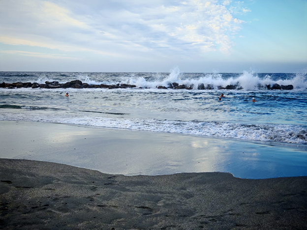 Cuando llegué a la playa el mar estaba bravío, enfurecido, cansado de cuerpos, despojos y bullicio , lanzaba con ira sus andanadas de olas que barrían la costa, saltaban los diques, atemorizaban a los barcos y expulsaban a los intrépidos que les hacían frente.
