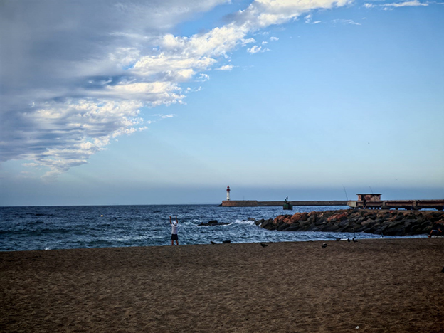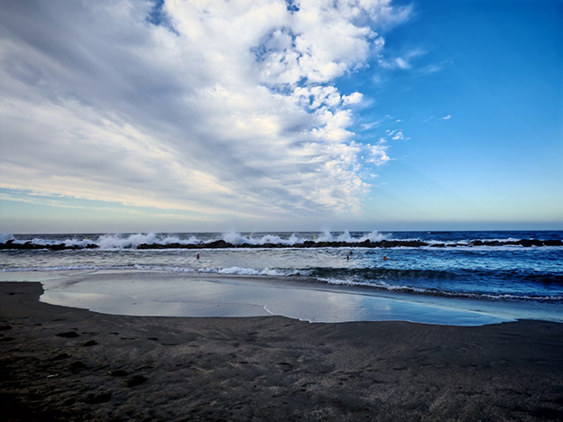 Pero no satisfecho jugó al despiste con sus pinceles y ladinamente escamoteaba nubes que abrían paso a lienzos de azules intensos para rápidamente esconderlos tras nublos pizarrosos, sin tregua iba descorriendo caprichosamente las telas celestes y el mar , envalentonado, redoblaba con más fuerza sus ataques.