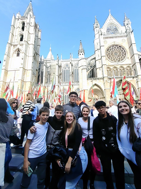 Un total de dieciocho estudiantes de los tres centros conocieron la tradición de los pendones leoneses o los carros engalanados, la historia de las Cantaderas o los principales monumentos de León.