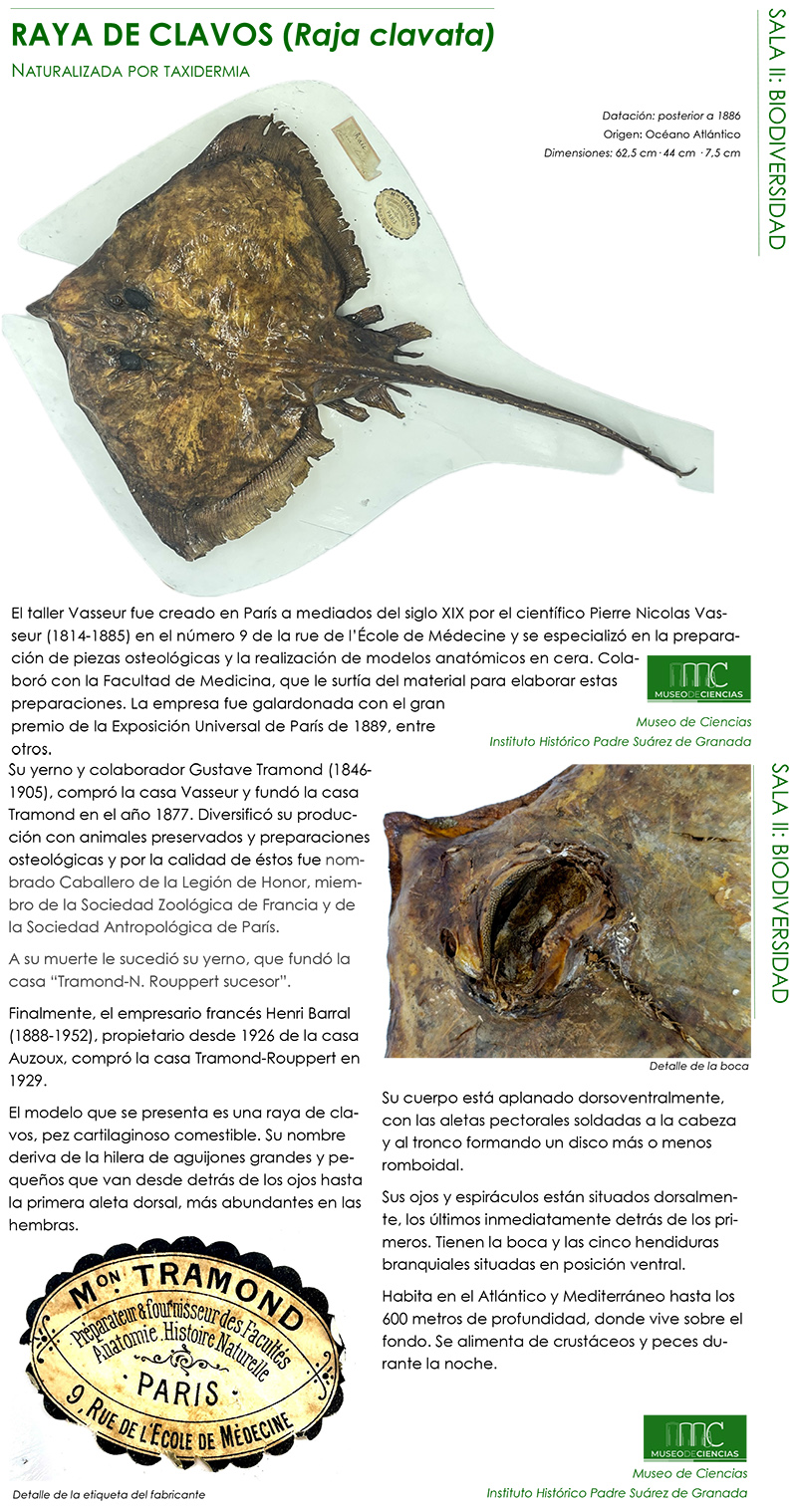 La responsable del Museo de Ciencias, Mª Adelaida Adarve, nos presenta esta semana una raya de clavos, naturalizada por taxidermia.