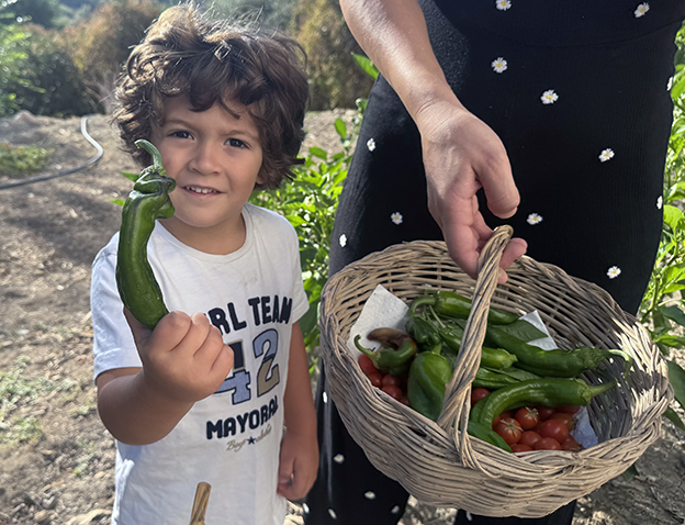 Alumno de Infantil recolecta pimientos en el huerto escolar :: R.C.G.