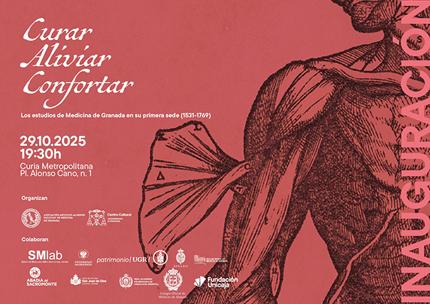 ‘Curar, aliviar, confortar. Los estudios de Medicina de Granada en su primera sede (1531 y 1769)’. Con esta exposición queremos analizar los primeros pasos universitarios y cómo fue la Facultad de Medicina en esta primera sede, entre 1531 y 1769. Se inaugurará el miércoles, 29 de octubre, a las 19:30 h. en la Curia Metropolitana (Plaza Alonso Cano, nº 1)