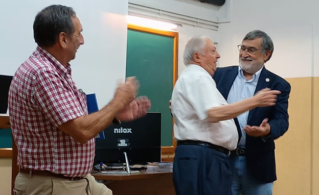 A continuación, el señor Hernández Quero ofreció un hermoso gesto de memoria: la entrega de un libro que recoge la obra de su tío, el pintor José Hernández Quero, a Rafael Reche Silva, secretario de ALUMA, uniendo así la poesía del color con la del verso.