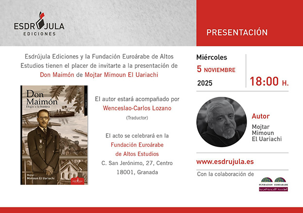 El arquitecto afincado en la ciudad-frontera de Tanger, Mojtar Mimoun El Uariachi (Tetuán, 1950) es el autor de ‘Don Maimón’ (Esdrújula Ed.). Junto con Wescenlao-Carlos Lozano, presentará su obra en la Fundación Euroárabe de Altos Estudios el miércoles, 5 de noviembre, a partir de las 18 horas.