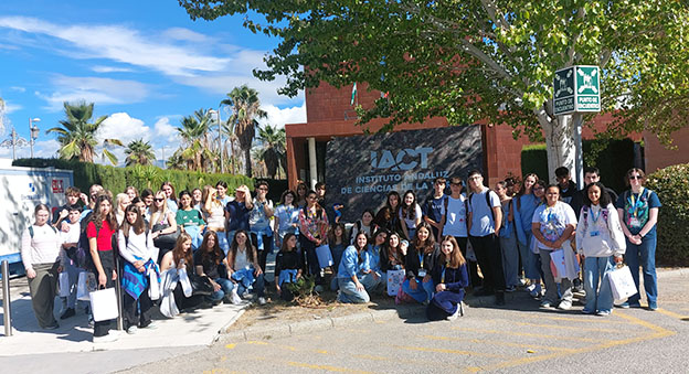 Después de esto el alumnado y el profesorado participante se trasladaron al Instituto Andaluz de Ciencias de la Tierra donde asistieron a charlas y talleres sobre algunas de las investigaciones que desde allí se llevan a cabo. Una de ellas versaba sobre las Cuevas de Nerja, que tuvieron la ocasión de visitar al día siguiente.