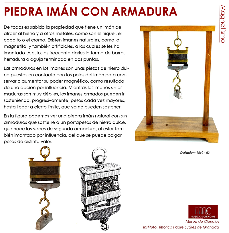 Cada vez más cerca de los 300 elementos publicados, José Emilio Padilla, responsable del Museo de Ciencias del Instituto Histórico Padre Suárez de Granada, nos muestra un nuevo artefacto. Se trata de una piedra imán con armadura que potencia la fuerza magnética de éste.