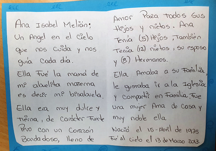 Un retoque aquí, una pincelada por allí… Y se creó una «secuencia ordenada de palabras» en memoria de nuestro ser querido.