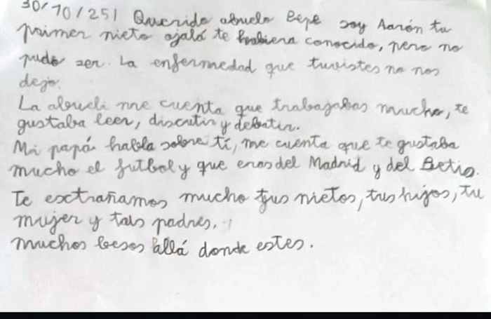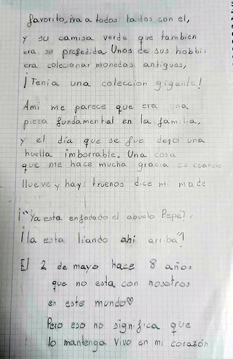 Mi alumna Claudia recordaba sollozante a su abuelo Juan y culminaba su carta impregnada de una dulzura y ternura inusitada con estos términos: