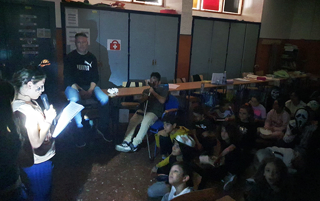 Con los nervios a flor de piel nos esperaban tres momentos claves que determinarían el trascurso y el devenir de mañana: ver una serie de televisión de miedo (controlando su contenido explícito), leer historias de miedo (creadas y defendidas por ellos, con un micrófono, a oscuras, iluminados únicamente por una linterna) y cómo no, nuestra actividad estrella, motivo de este y el anterior escrito o artículo: Carta al Cielo.