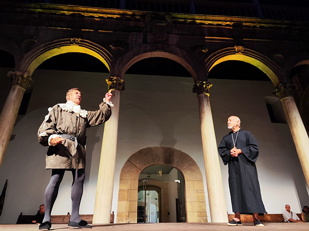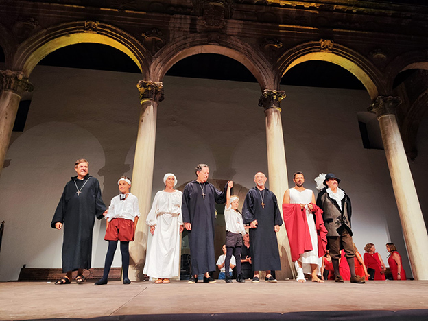 Llegó el 3 de julio de 2024, y con él, el espectáculo teatral y musical ‘Clemencia y Coraje’ conmemorando el incendio que se produjo el 3 de julio de 1549 en el Hospital Real de Granada, hace 475 años, en cuya extinción y salvación de enfermos colaboró San Juan de Dios.