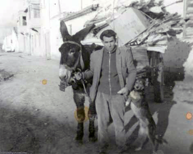 “Los quintos, en las Cuatro Esquinas. Entonces tenían la costumbre de que, cuando los mocicos eran llamados a filas, compraban un pollino y se lo zampaban. Estos son de la quinta de finales de los sesenta. De izquierda a derecha: Antonio Martínez Lorente, los hermanos Antonio y Bernardo Sotero, Agapito y Manolo el de Catalina.…
