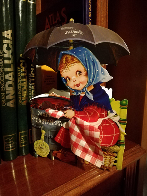 En uno de mis paseos por la ciudad me detuve ante el escaparate de una librería que tenía una fina cuerda en la que habían tendido cogidos con pinzas como si de una colada de ropa se tratara, una serie de los famosos cuentos troquelados de Juan Ferrándiz. Eran los cuentos troquelados de mi infancia reeditados, inmediatamente me fijé en el titulado “Mariuca la castañera” mi favorito, y sin dudar entré en la librería y lo compré, ahora lo tengo en un lugar destacado de mi biblioteca.