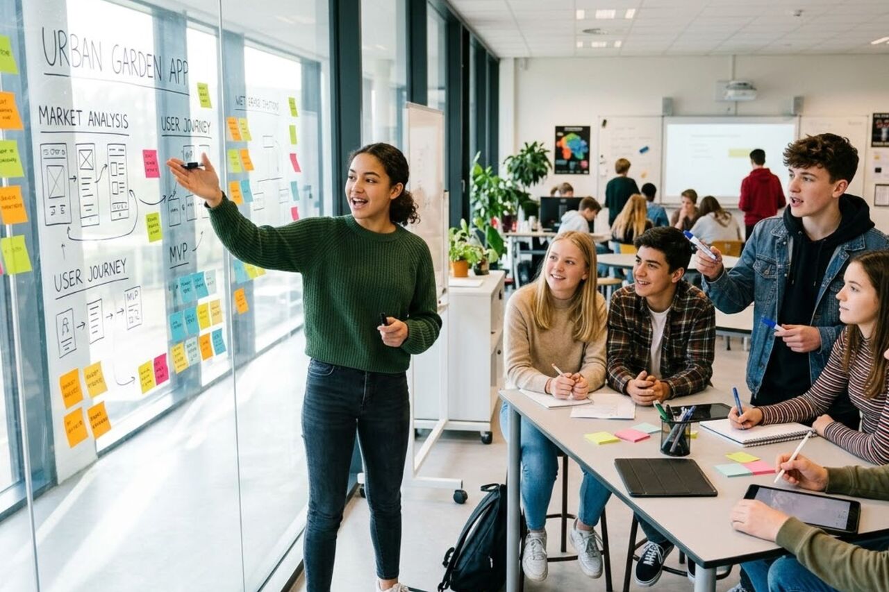 En Castilla y León, centros como el IES Arca Real de Valladolid cuentan con su propia Aula de Emprendimiento, donde los estudiantes desarrollan planes de negocio aplicando metodologías de aprendizaje práctico muy similares a las utilizadas en programas de dirección empresarial.