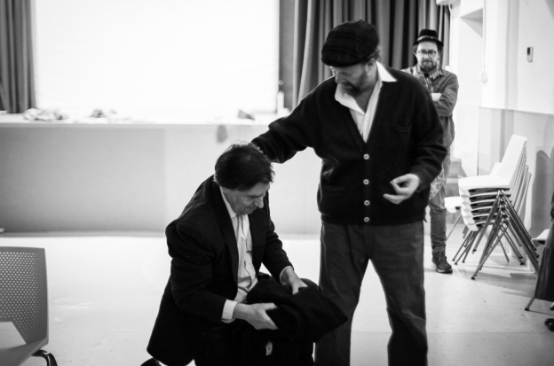 Lo primero que salta a la vista es esa modestia radical del protagonista –en realidad, la de quien solo pide no ser borrado del mundo- que nos resuena hoy con una urgencia que Gógol, probablemente, no podía prever. Con El abrigo. Un lugar del frío hemos partido de esa imagen y la hemos desplazado hacia una pregunta que nos pertenece porque la sentimos como nuestra: ¿qué queda de la bondad cuando el entorno convierte la vulnerabilidad en debilidad y la atención en ingenuidad o, también, el cuidado en pérdida de tiempo? Esta es la pregunta que estructura la obra, es decir el núcleo de convicción dramática empezó a construirse, a habitarnos, desde esta interrogación.