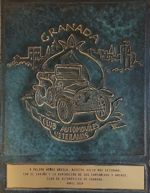 El Club de Automóviles Veteranos de Granada ha realizado un homenaje a su socio más veterano, Felipe Núñez Dávila, que a sus 96 años sigue conduciendo los numerosos y diversos vehículos clásicos de su colección, con notable maestría y admiración de todos.