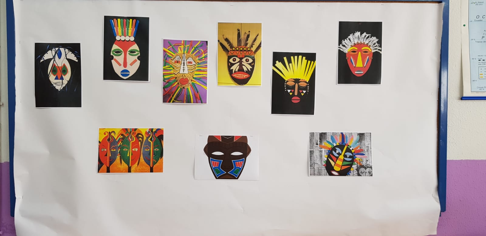 4°. Ed. Primaria. Arte africano en el que se ha disfrutado de las diferentes manifestaciones artísticas africanas convirtiendo al alumnado en maestros artesanos realizando nuestras propias creaciones.